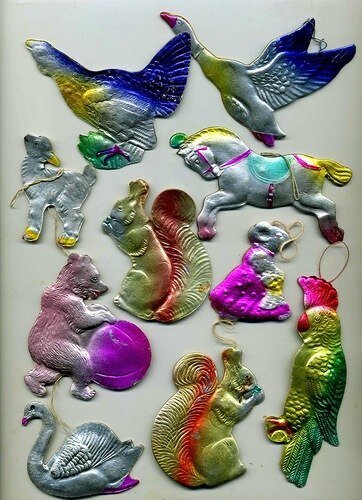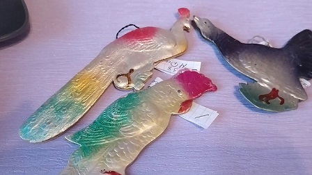 Стеклянные игрушки: Мишка с гармошкой, Пингвин, Белка, Баклажан, Заяц с барабаном, Кролик, Ежик, Орех, из недавно опознанных Девочка в капюшоне (см. ниже).