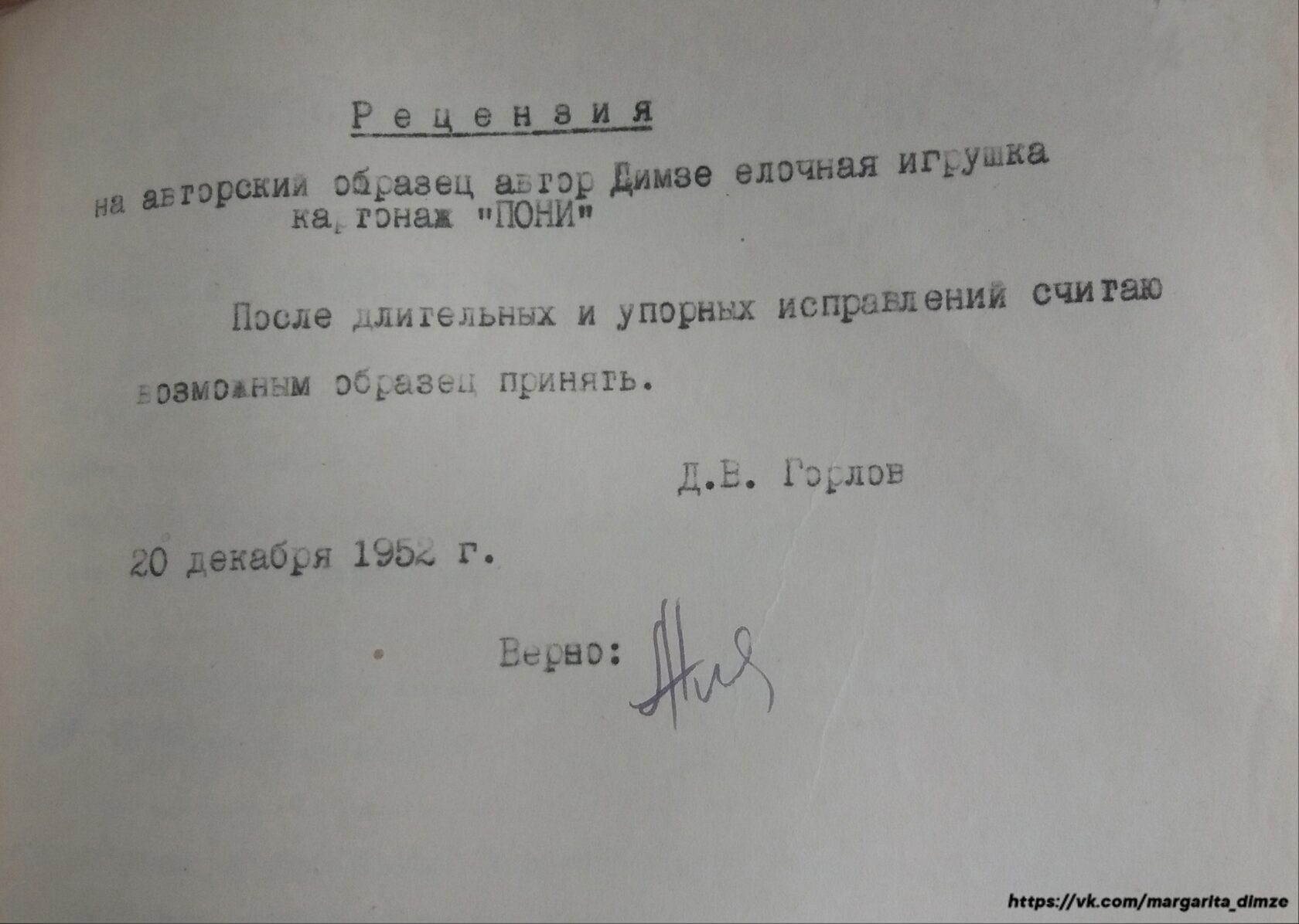 В 1951 году, учтя все замечания, вернулась к работе над этой игрушкой. В том же году Маргаритой были созданы самые известные ее игрушки из картонажа и стекла, а именно:
