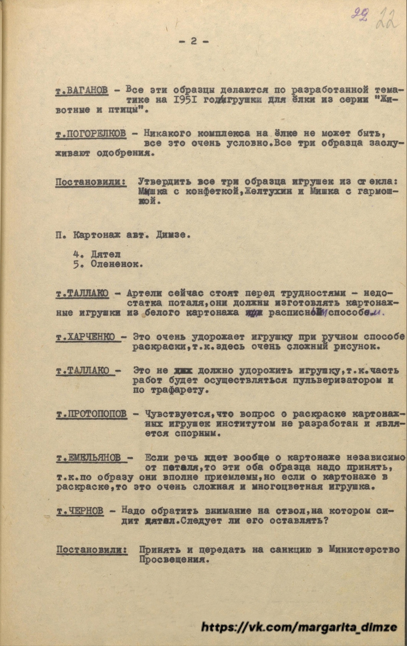 В 1950 году Маргарита была уволена в связи с сокращением штата, а уже 19 октября 1950 года была принята на работу в Научно-исследовательский институт игрушки на должность модельера в Цех №4.