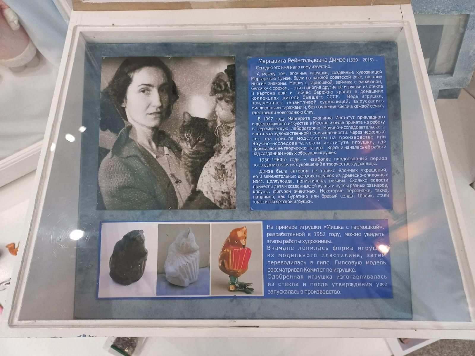 Здесь, собраны бумаги из архива Маргариты Димзе, семейные фотографии и документы, авторские рисунки, модели работ из пластилина и гипса, документы на игрушки, а также документы из государственных и частных архивов и тематические материалы из сети интернет.