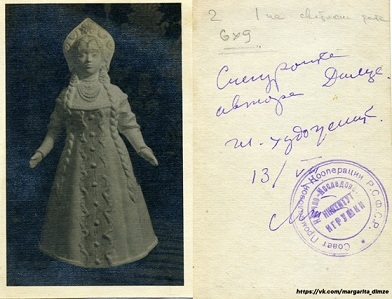 "Эта страница https://vk.com/margarita_dimze посвящена жизни и творчеству художницы-кукольницы Маргариты Рейнгольдовны Димзе (1920 - 2015).