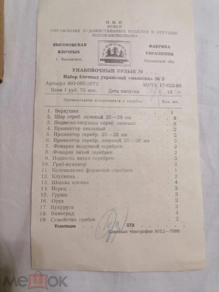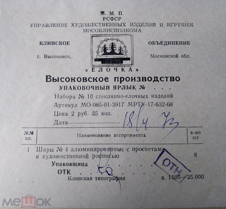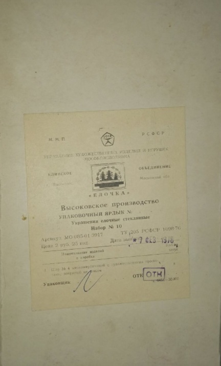29.11.1959 г. Высоковская артель переименована в фабрику ёлочных украшений, 20.10.1960 г. Клинская артель реорганизована в Клинскую фабрику, сельские артели – в Круговскую фабрику.